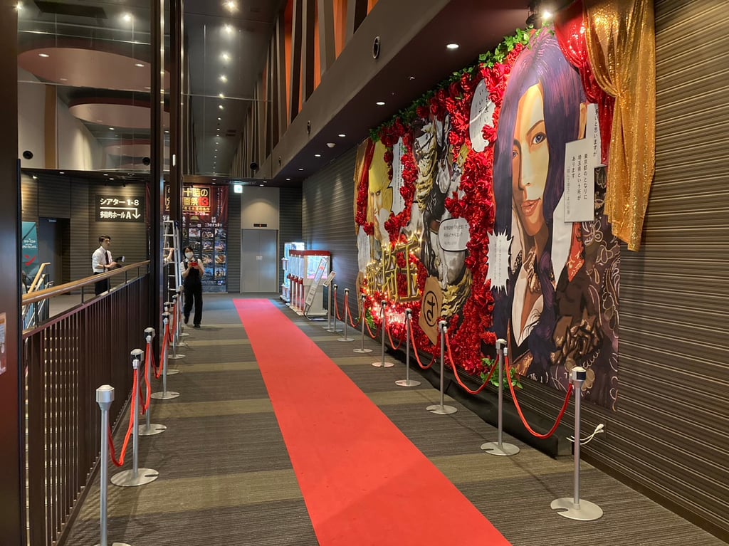 こうのすシネマのロビーにレッドカーペットを敷き、ウエルカムの準備万端。