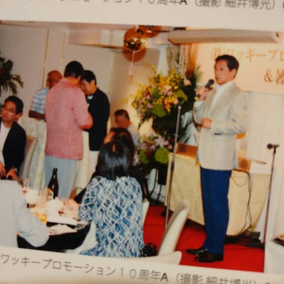 おかげ様で、この試合は接戦の末勝利、ワッキープロモーション社長の脇田が、スポンサーを代表して、プレゼンターを勤めました。